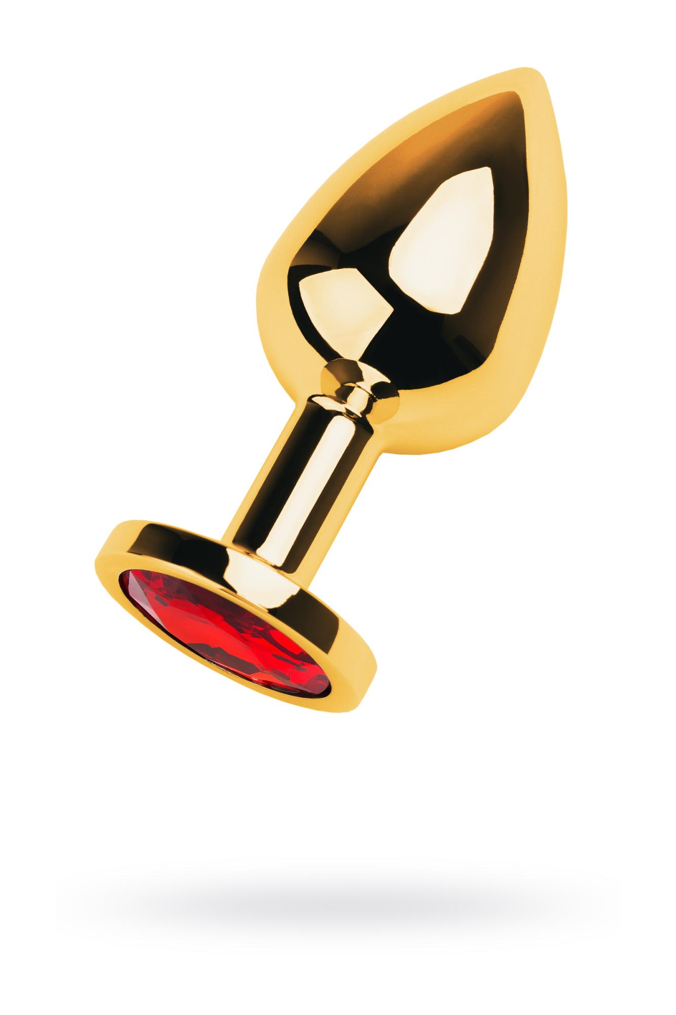 Анальная втулка Metal by TOYFA, металл, золотая, с красным кристаллом, 8 см, d 3,4 см, 85 г (0T-0000