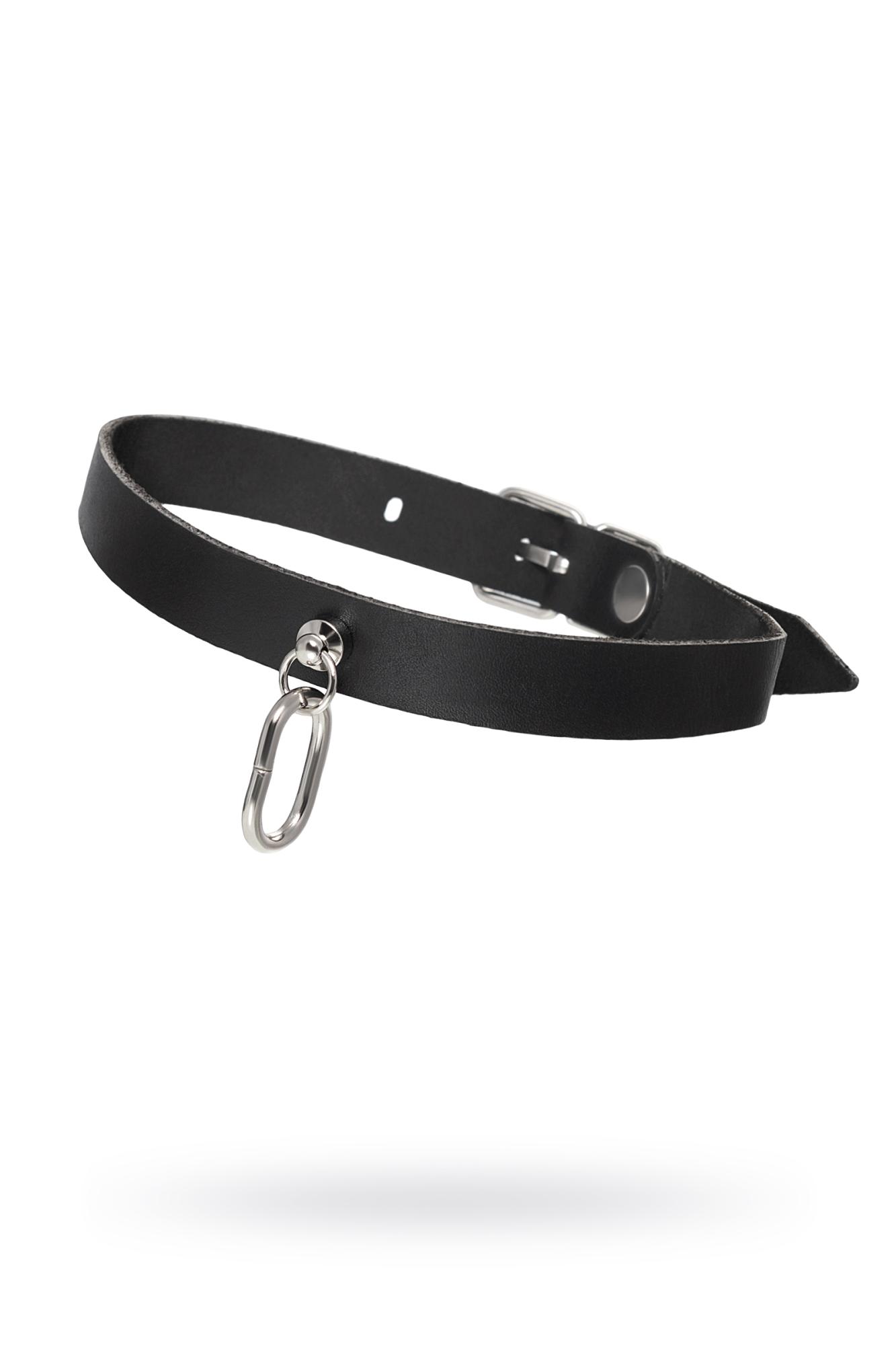 Чокер Pecado BDSM, с овальным кольцом, натуральная кожа, черный (УТ-00003070)